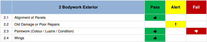 Often, we wish to display the results of each question in the cell of a table, with an icon, and the cell background set to some colour.